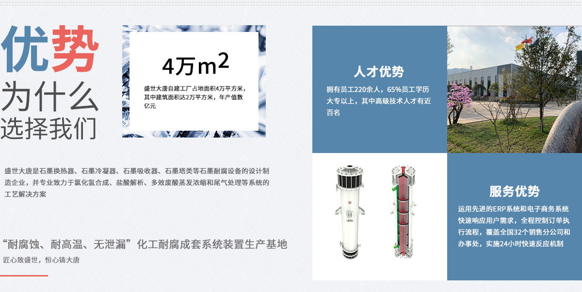 安徽盛世大唐化工設備集團有限公司-集無泄漏磁力泵、石墨設備和化工耐腐成套裝置的研發(fā)、生產(chǎn)、銷售和服務于一體,生產(chǎn)基地坐落于震驚中外的“皖南事變”發(fā)生地、歷史悠久的江南名鎮(zhèn)——安徽涇縣茂林,占地面積4萬...